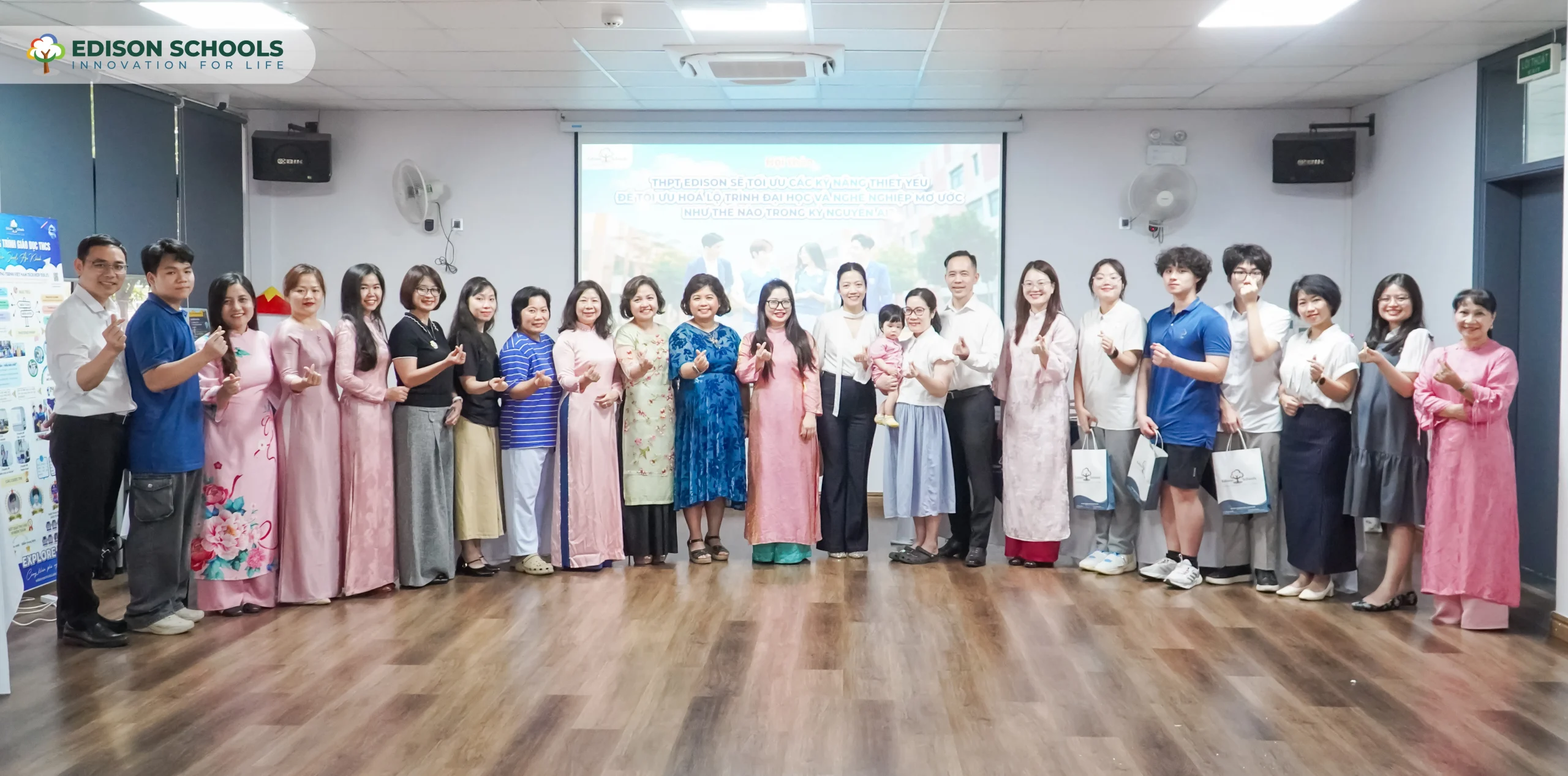 Đội ngũ giáo viên tại Edison không chỉ sở hữu bằng cấp chuyên môn cao mà còn liên tục được đào tạo và phát triển phương pháp giảng dạy mới theo chuẩn quốc tế để hướng dẫn học sinh trong mọi hoạt động học tập.