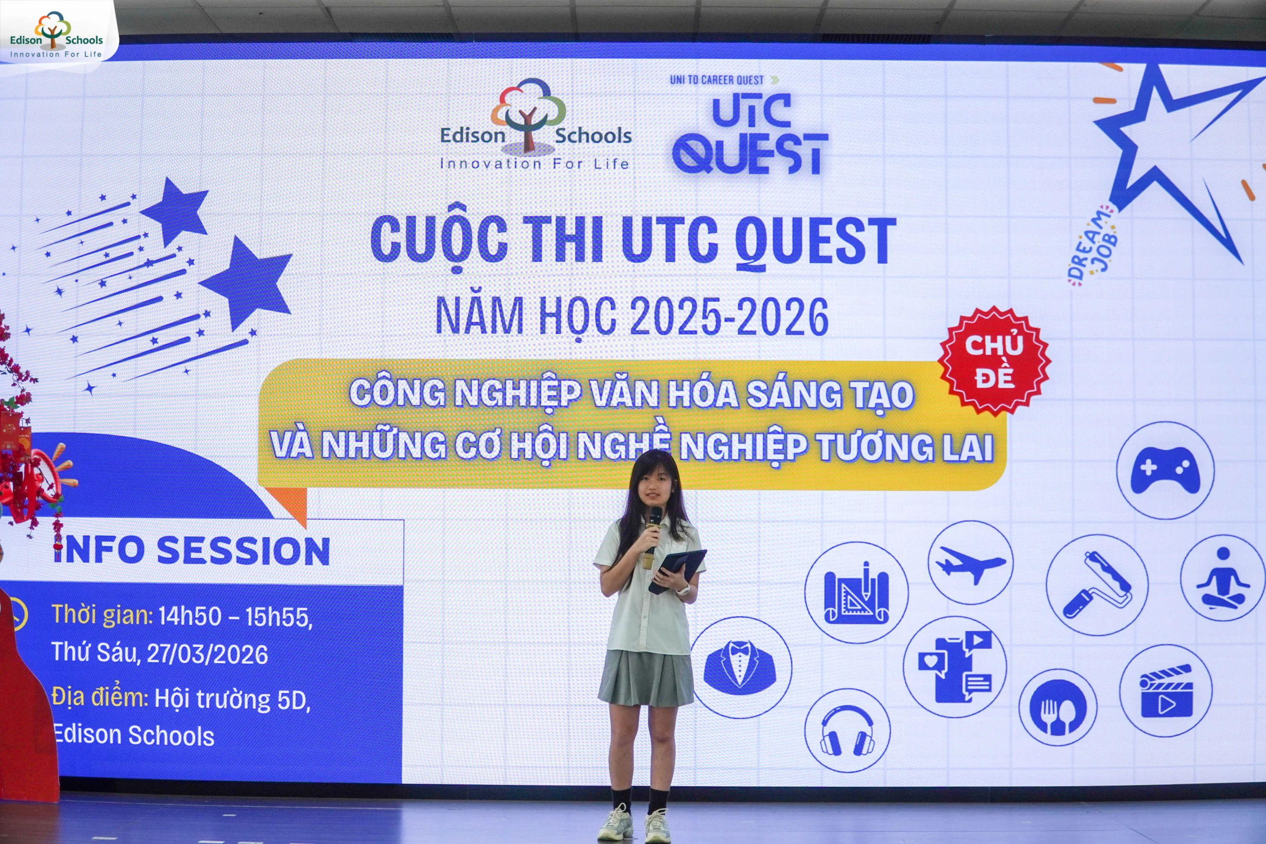 KHỞI ĐỘNG CUỘC THI UTC QUEST 2025–2026 Chủ đề: “Công nghiệp Văn hóa Sáng tạo Và Những Cơ Hội Nghề Nghiệp Tương Lai” Đối tượng: Học sinh khối 8 – 11 trong Hệ thống Trường PTLC Edison Trong thời đại AI, điều gì khiến bạn KHÔNG thể bị thay thế? Khi AI có thể viết,. . .
