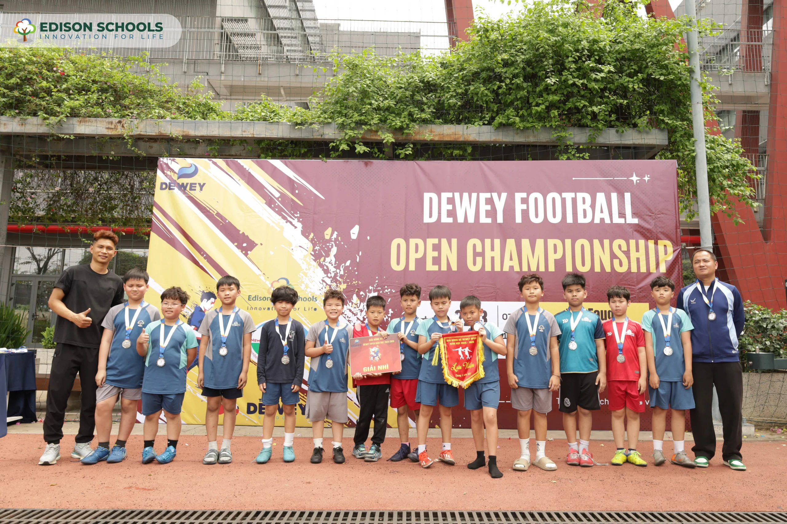 Khép lại hành trình tại Dewey Football Open Championship, đội tuyển bóng đá Tiểu học Edison Schools An Khánh đã xuất sắc giành ngôi Á quân, ghi dấu bằng chuỗi trận đấu giàu chuyên môn, thể hiện rõ bản sắc chiến thuật và tinh thần thi đấu đáng khen ngợi. Sức mạnh của đội bóng Edison nằm ở sự gắn kết như những thành viên trong một gia đình. Mỗi khi ra sân, các bạn luôn bọc lót cho nhau cực tốt, khiến đối thủ khó lòng vượt qua. Khi tấn công, những đôi chân nhỏ bé lại cực kỳ thanh thoát với những pha chuyền bóng thông minh và chạy chỗ đầy tốc độ. Tuyệt vời nhất là. . .
