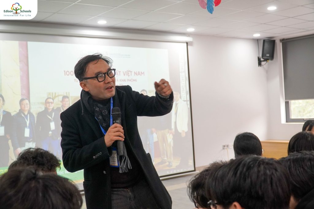 Tại Edison Schools, các bạn học sinh luôn có nhiều cơ hội gặp gỡ và giao lưu với các chuyên gia trong các dự án và môn học đa dạng. Những cơ hội này giúp các bạn mở rộng kiến thức, nâng cao kỹ năng và phát triển tư duy sáng tạo, đồng thời thúc đẩy sự tự tin trong việc ứng dụng lý thuyết vào thực.
