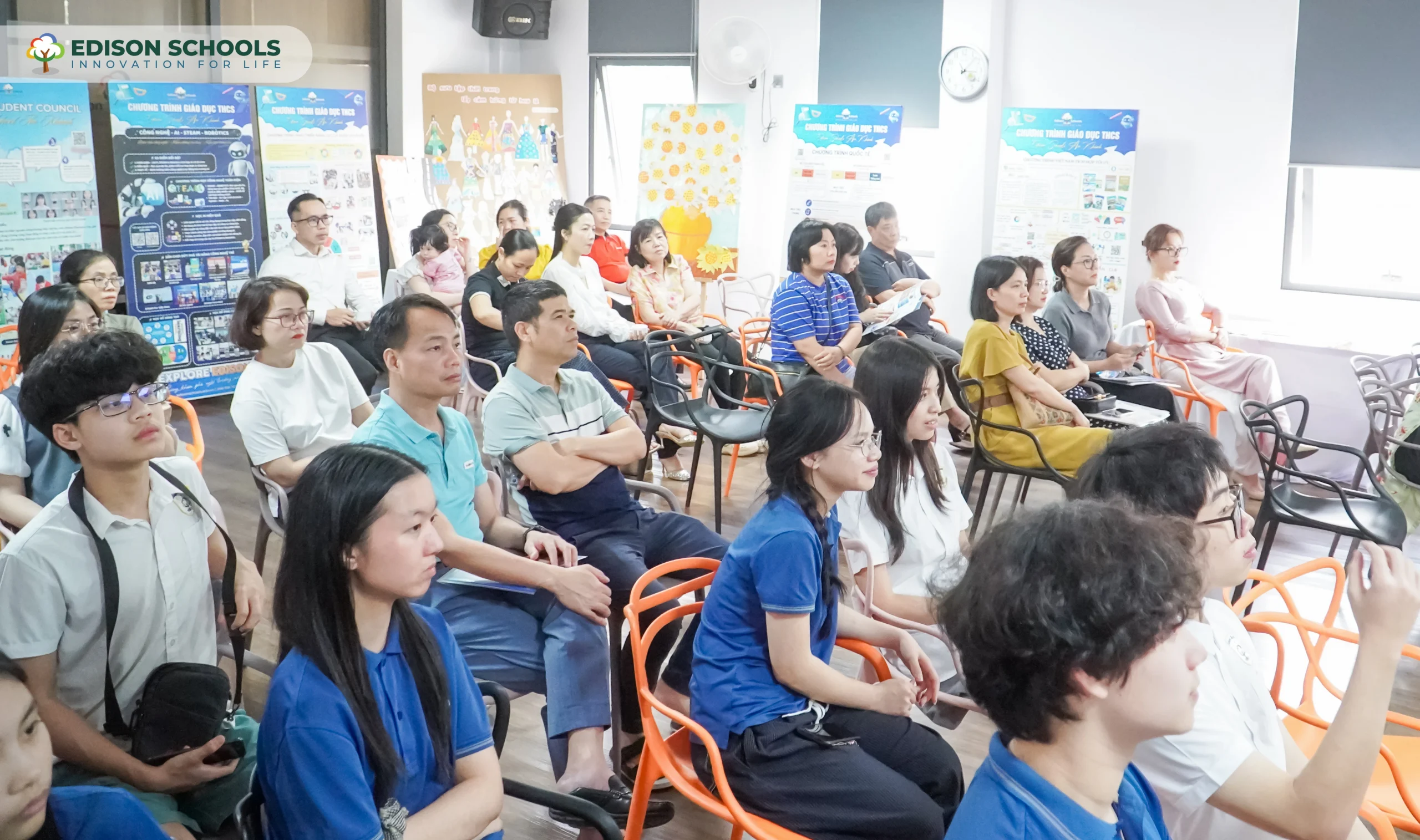 Khép lại hội thảo, không khí trao đổi trở nên sôi nổi hơn bao giờ hết khi nhiều phụ huynh chủ động đặt câu hỏi, chia sẻ băn khoăn và tìm hiểu sâu về chương trình. Sự quan tâm lớn cùng những phản hồi tích cực chính là minh chứng rõ ràng cho sức hút của chương trình THPT Edison An Khánh – một môi trường giáo dục hiện đại và giàu tính định hướng cho tương lai.