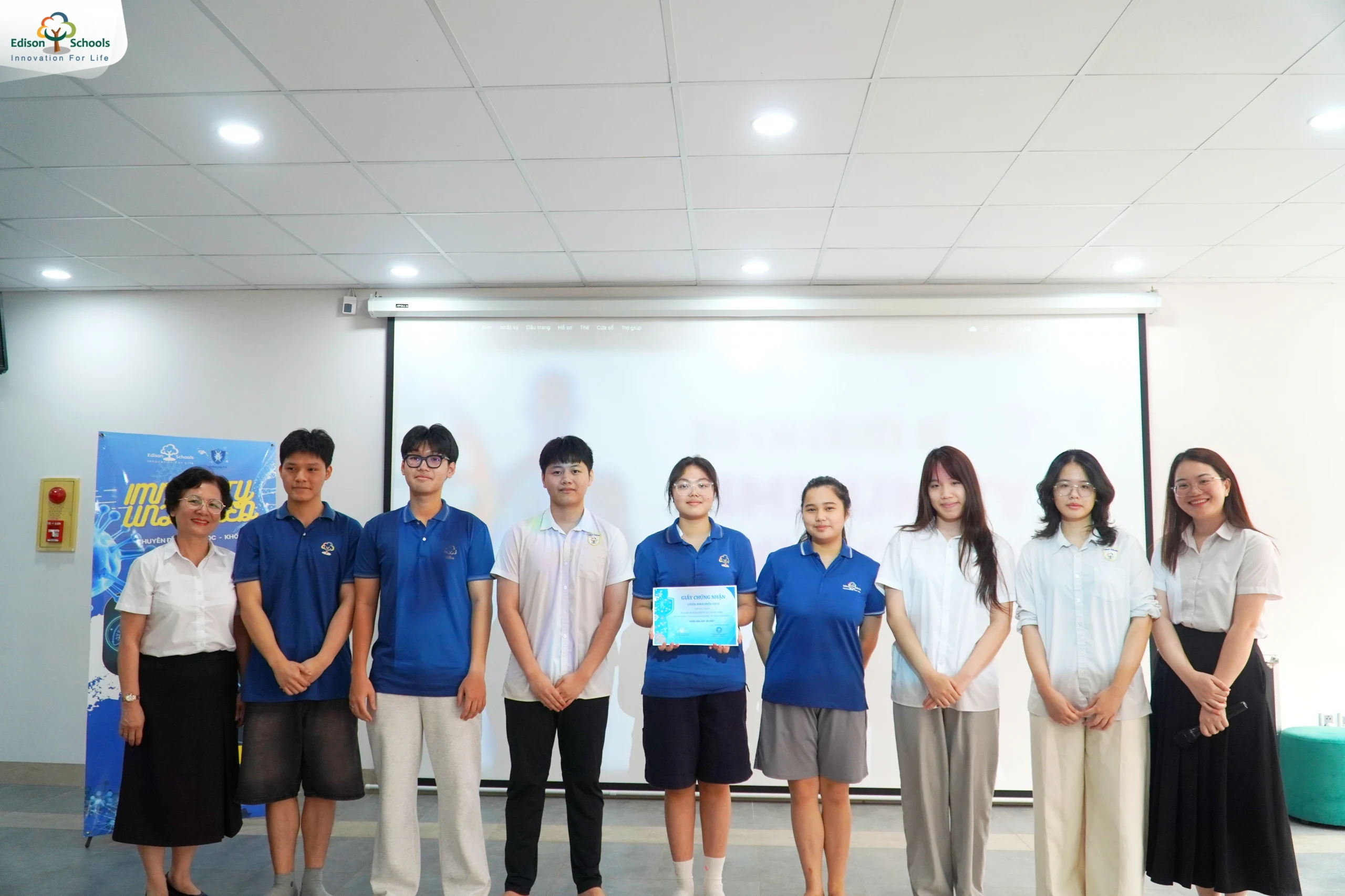 Đặc biệt, board game “Biệt đội giải độc” đã xuất sắc đạt danh hiệu “Chiến binh xuất sắc nhất”. Sản phẩm gây ấn tượng khi được thiết kế đồng thời ở cả hai phiên bản online và offline, tích hợp kiến thức sinh học một cách chính xác, linh hoạt và sáng tạo. Đây là minh chứng rõ nét cho năng lực ứng dụng công nghệ, tư duy hệ thống và khả năng chuyển hóa kiến thức về hệ miễn dịch thành trải nghiệm học tập thực tiễn của học sinh Edison.