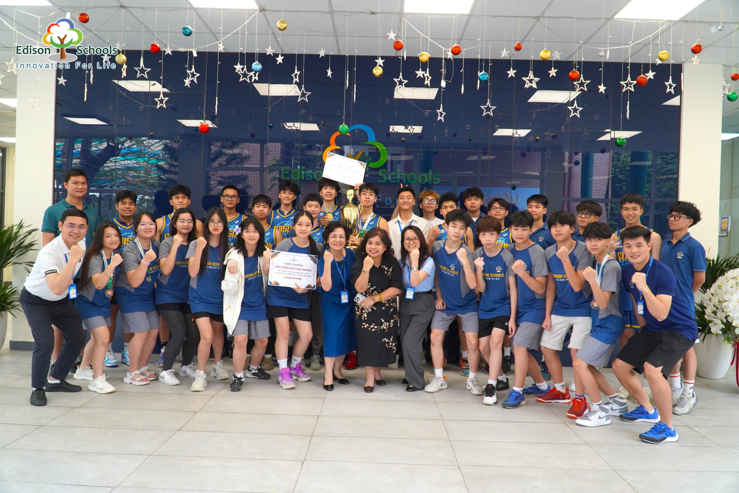 Ban Giám hiệu trường PT Liên cấp Edison Schools đã tổ chức buổi lễ vinh danh các đội thể thao và cá nhân xuất sắc giành thành tích tại Hội khỏe Phù Đổng tỉnh Hưng Yên, sau khi các bạn đạt được nhiều kết quả ấn tượng. Môn Bóng Rổ: đội Bóng Rổ Nam THPT. . .