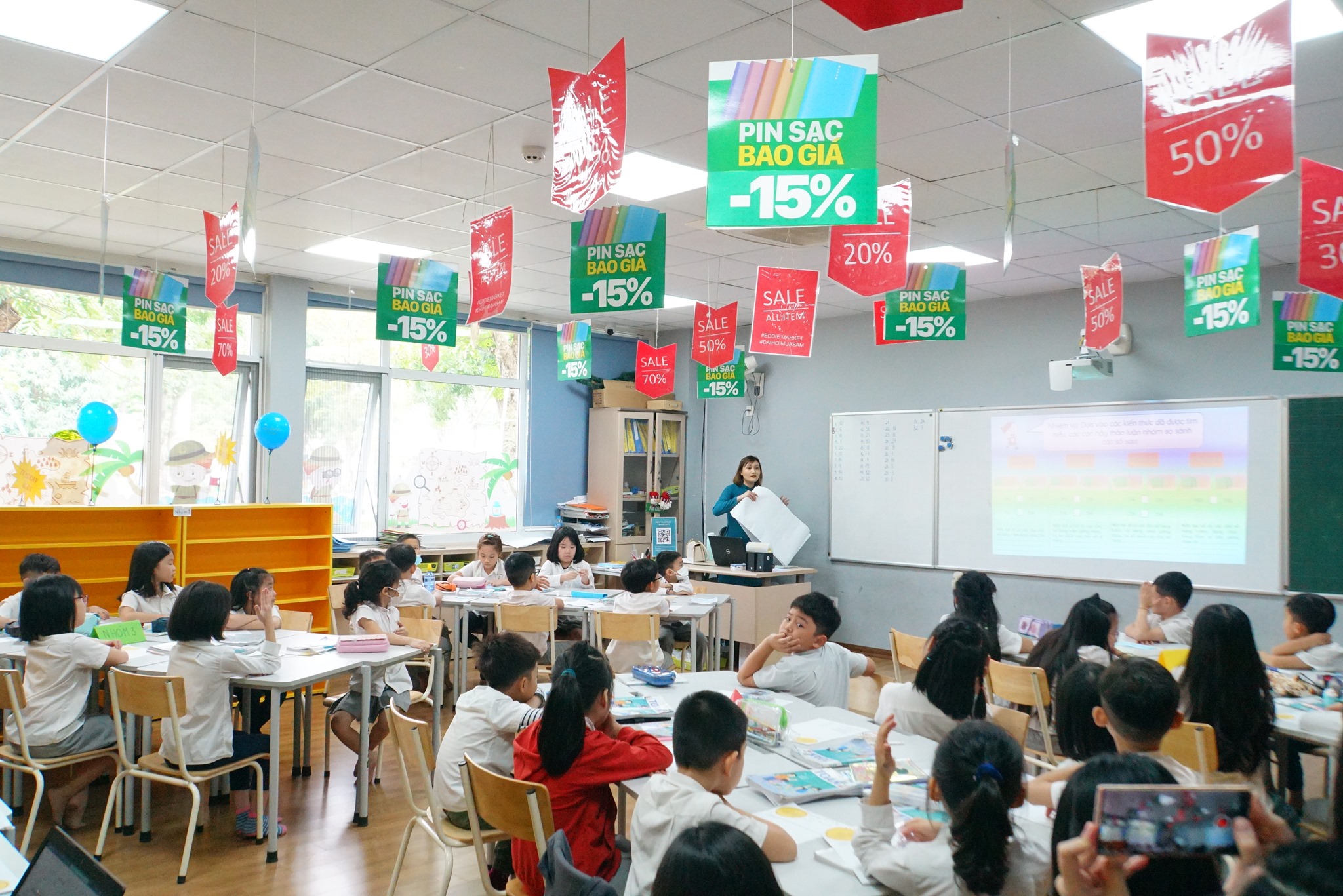 Ngày hôm ấy, chẳng ai có thể đi ngang qua hành lang Tầng 1 Tòa nhà Diversity mà không tò mò với “lễ hội mua sắm’’ của các bạn Học sinh lớp 2. Không gian lớp học đã được cô giáo Phạm Thúy Hằng và các bạn học sinh sắp đặt lại thành một “đại siêu thị’’ với biết bao mặt hàng thú vị! Đây chính là cách thức mà giáo viên làm cho nội dung “So sánh số có 3 chữ số’’, môn Toán trở nên gần gũi, lý thú và mang lại cảm hứng học tập cho học sinh!