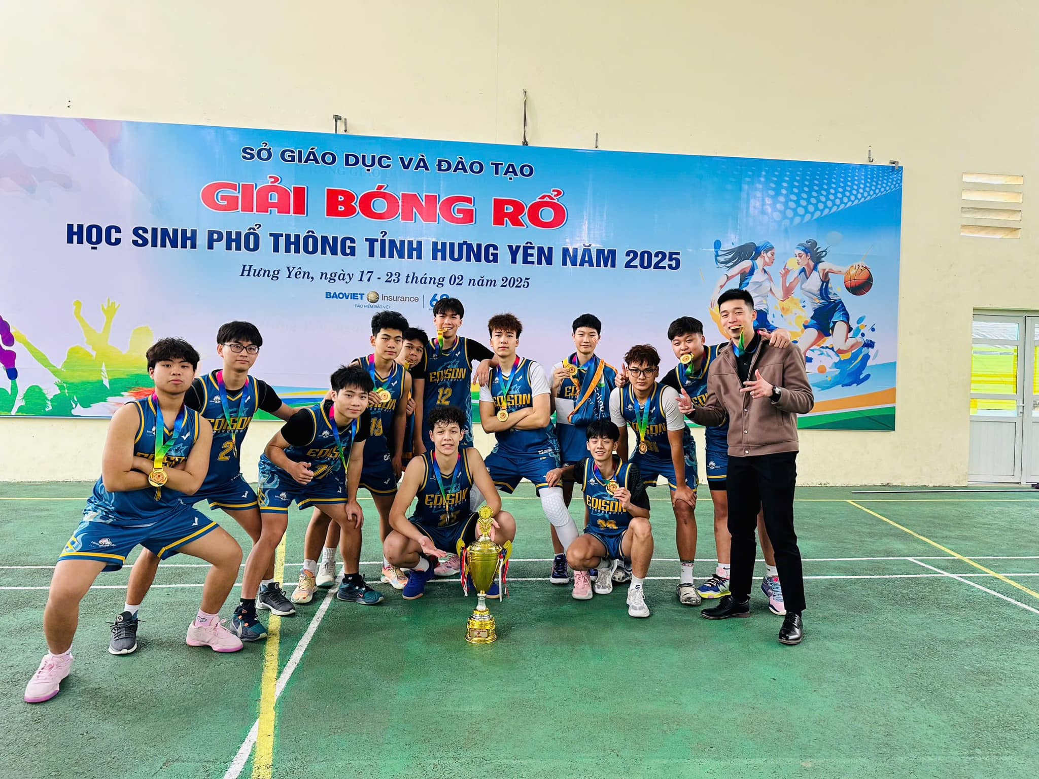 Đội bóng rổ nam Edison schools vô địch Giải bóng rổ học sinh Phổ thông tỉnh Hưng Yên 2025