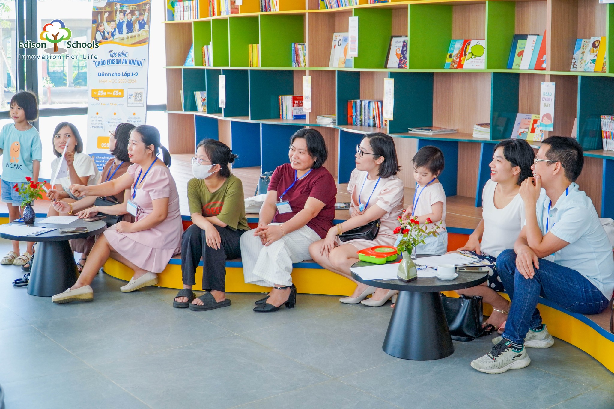 Trong không khí chill chill của khu vực Thư viện mở, cha mẹ cùng các thầy cô trong BGH Edison Schools An Khánh đã cùng nhau thưởng thức ly cafe sáng, cùng chơi game show và cùng nhau giải đáp những thắc mắc về chương trình và dịch vụ tại Edison An Khánh.