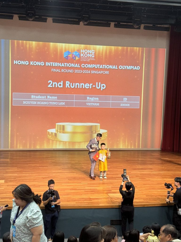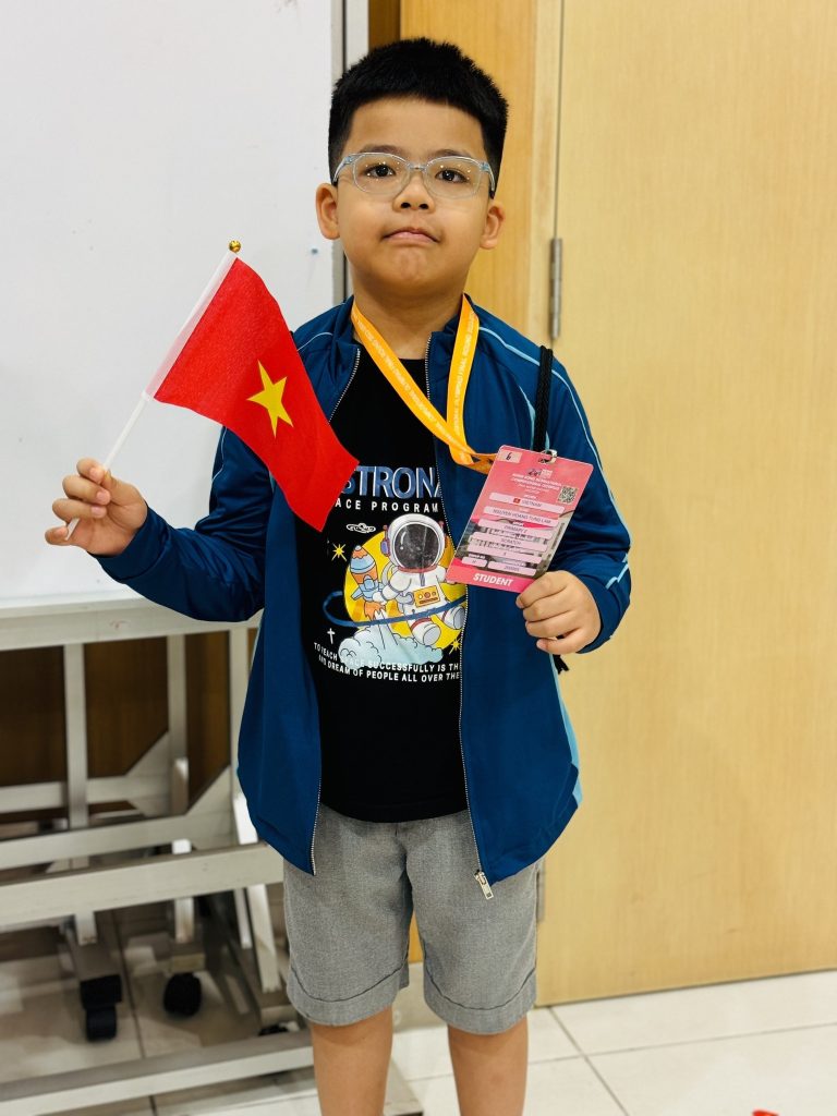 Thí sinh thi trực tiếp duy nhất tại Singapore – Nguyễn Hoàng Tùng Lâm đã xuất sắc đoạt Cúp Á quân lứa tuổi lớp 2.