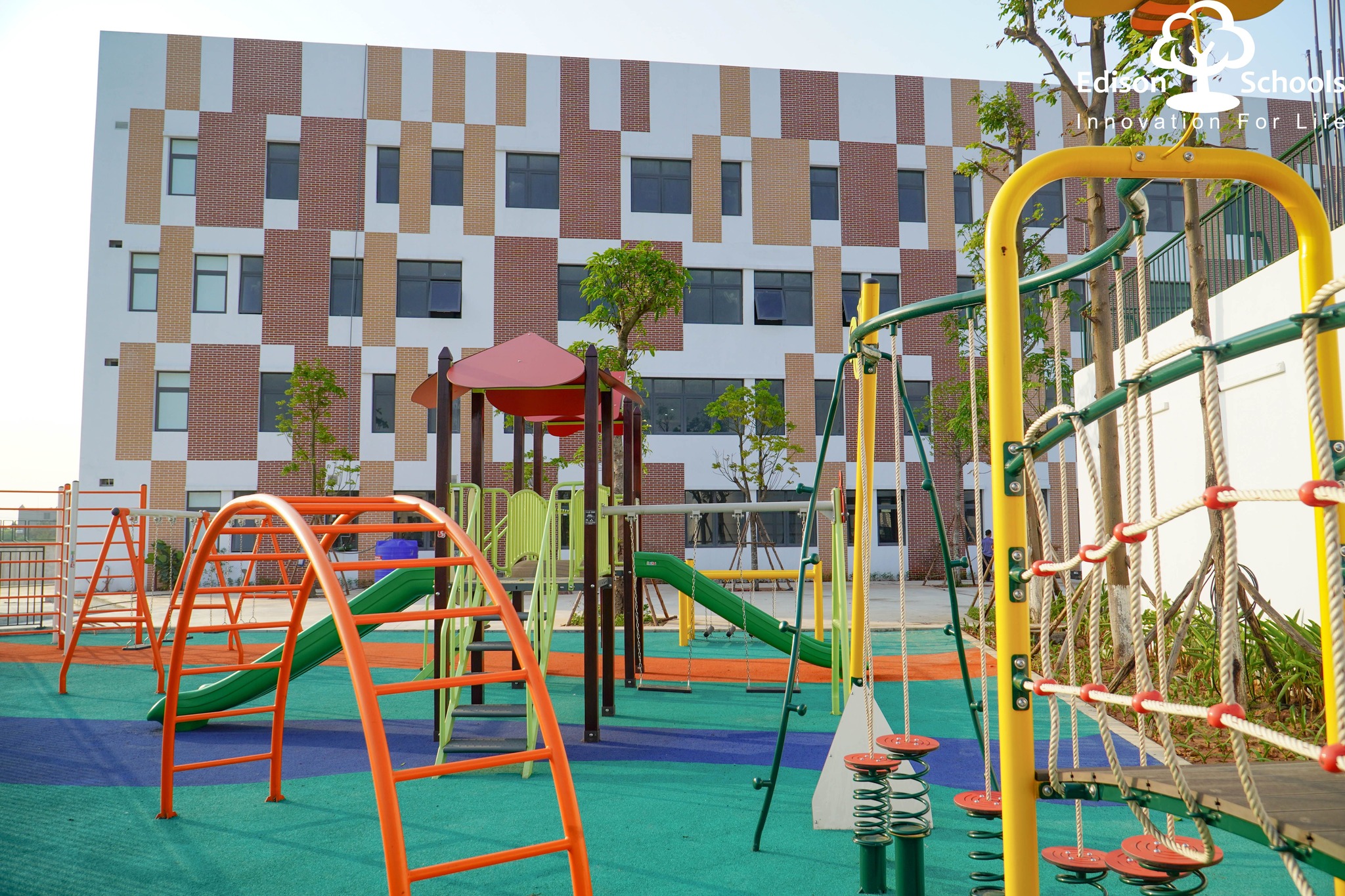 Khu tổ hợp vui chơi cho học sinh đã được lắp đặt hoàn tất. Tổ hợp này bao gồm các nhóm thiết bị được thiết kế an toàn, đa dạng, tạo điều kiện cho các con học sinh được vui chơi, vận động tốt nhất. Qua đó không chỉ tăng cường thể chất mà còn kích thích học sinh khám phá thế giới xung quanh, xây dựng mối quan hệ với các bạn đồng trang lứa. Các thiết bị vui chơi tại hệ thống trường Edison đảm bảo được làm từ những vật liệu an toàn, bền trước tác động của thời tiết và màu sắc rất bắt mắt với các em học sinh.
