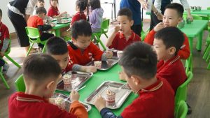 Các bạn nhỏ thưởng thức bữa ăn nhẹ tại Edison Schools