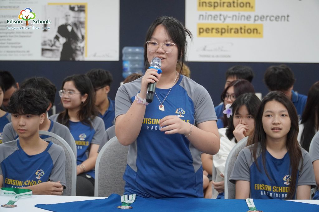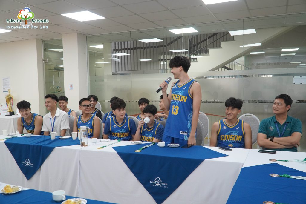 Vẫn trong tâm trạng “lâng lâng sau chiến thắng”, Việt Dương – thành viên đội Bóng rổ nói : “Con xin cảm ơn các thành viên trong đội, 2 thầy huấn luyện và ban truyền thông, Ban Giám hiệu đã cổ vũ hết mình cho bọn con, sau giải đấu, con nhận ra đội Bóng rổ Edison có sự đoàn kết thật tuyệt vời. Có thời điểm bị dẫn trước nhưng các thành viên vẫn cầm tay nhau để quyết tâm giành chiến thắng.”