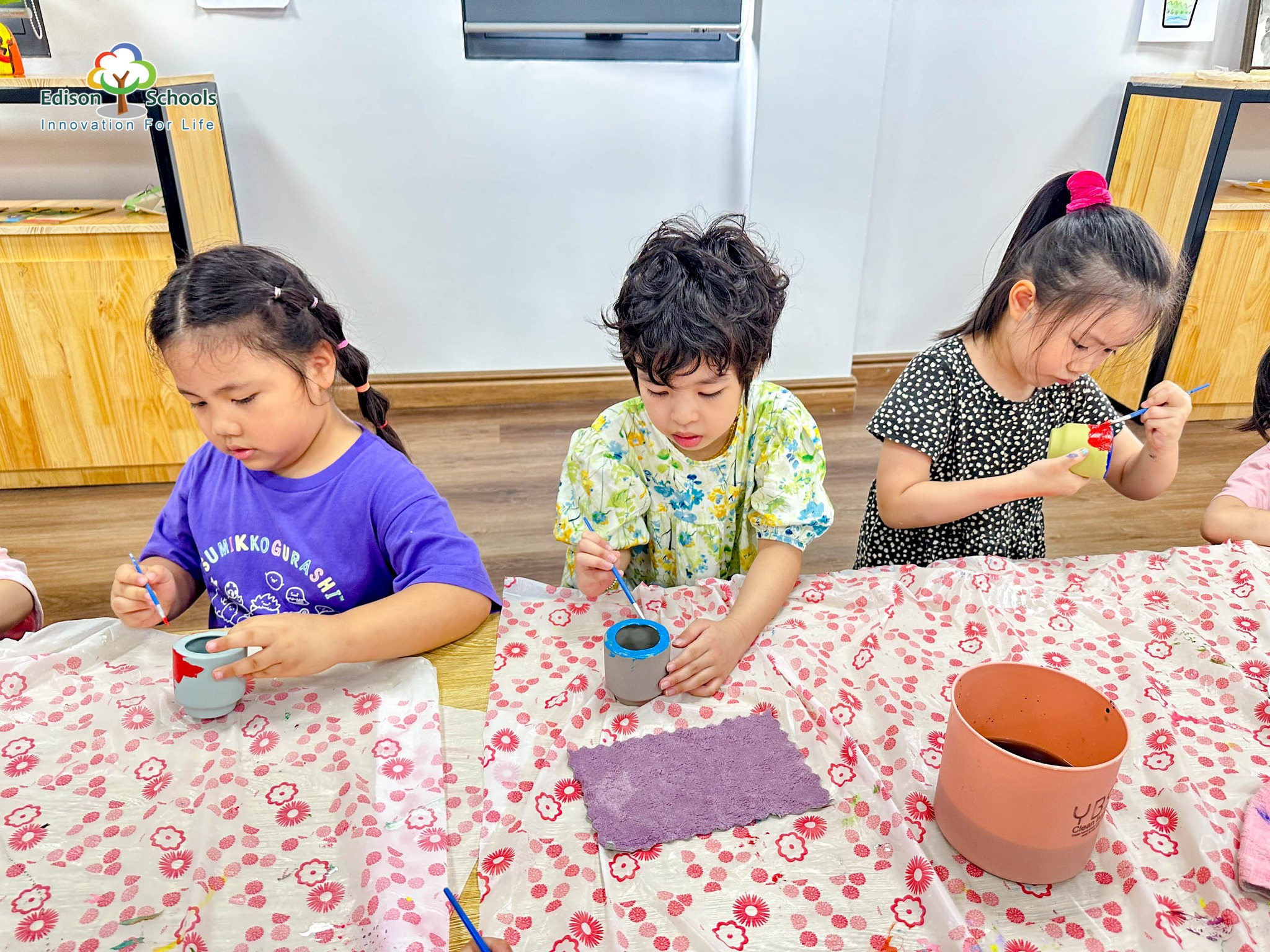 Làm và trang trí đĩa gốm tại trại hè Edison An Khánh