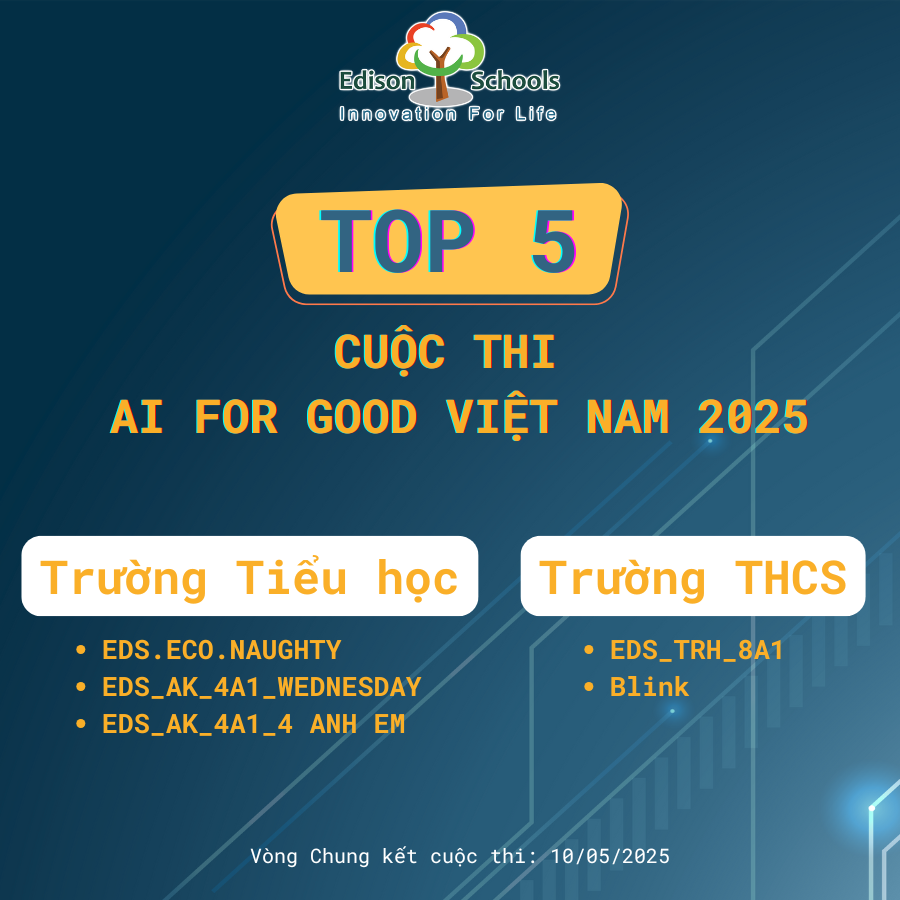 Vượt qua hơn 450 bài dự thi đến từ 33 tỉnh thành, các đội thi từ Hệ thống Trường PTLC Edison đã xuất sắc lọt vào Top 5 cuộc thi AI For Good Việt Nam 2025 với những dự án được Ban Giám Khảo đánh giá cao nhất về sáng tạo, tính ứng dụng, và thông điệp. . .