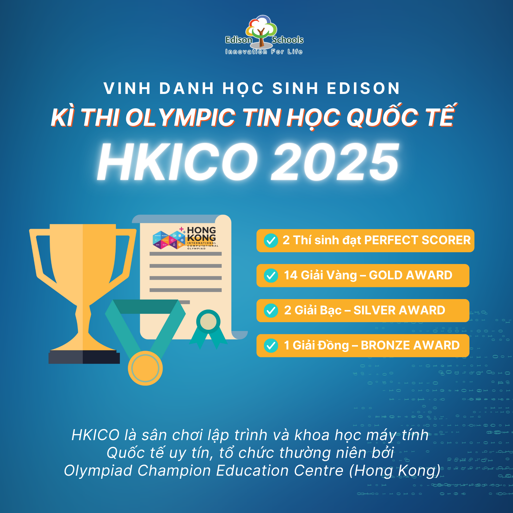 Vinh danh học sinh tiểu học Edison đạt giải Olympic Tin học Quốc tế HKICO 2025