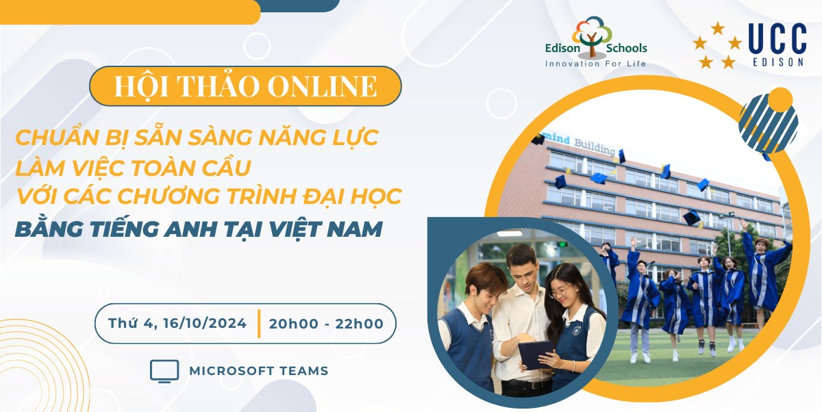 Hội thảo trực tuyến do Văn phòng Tư vấn – Hướng nghiệp & Đại học – Du học Edison (Edison UCC) đã mang đến những thông tin vô cùng hữu ích về các chương trình đào tạo quốc tế bằng tiếng Anh ngay tại Việt Nam tới đông đảo phụ huynh và học sinh tham. . .