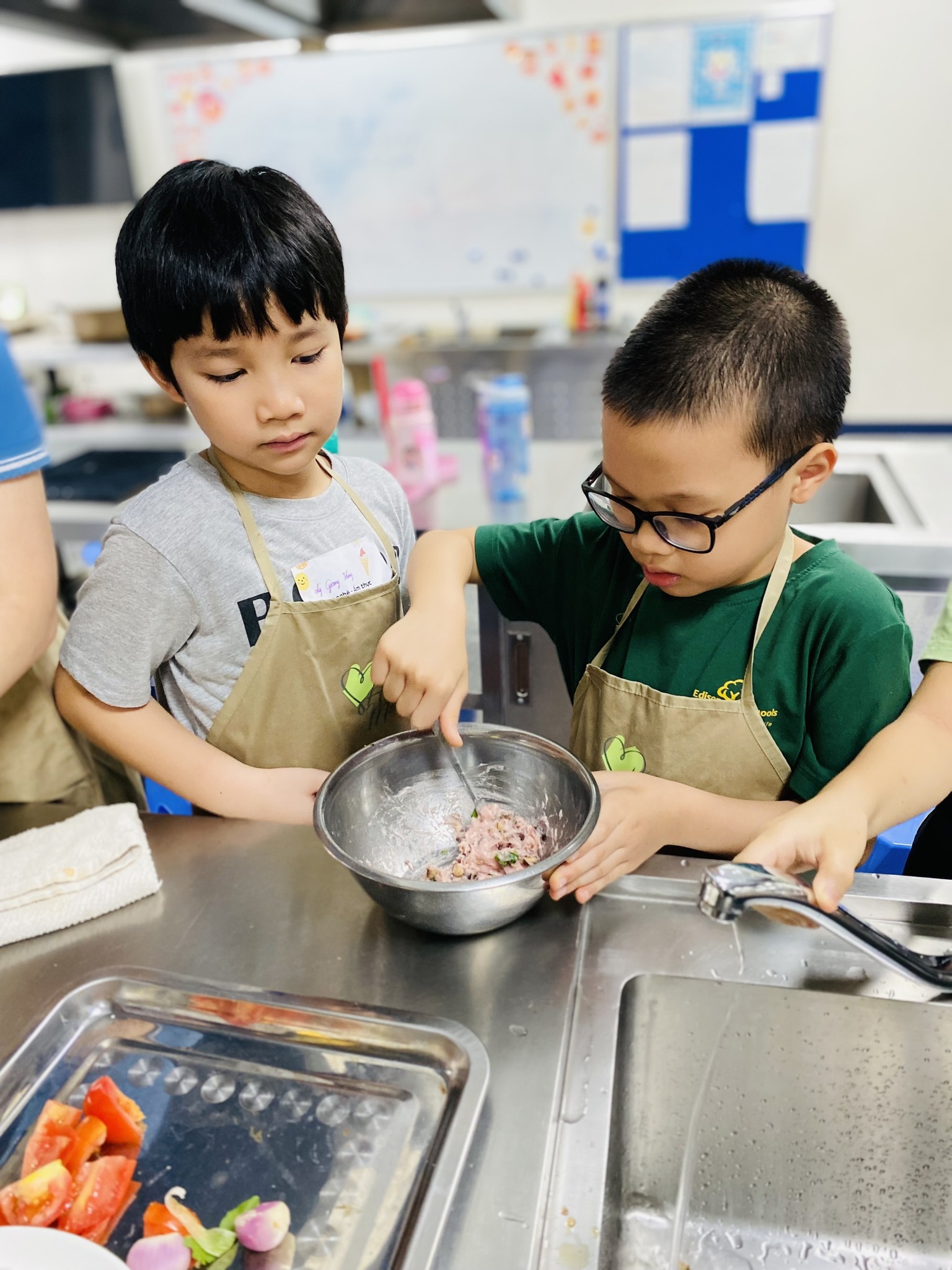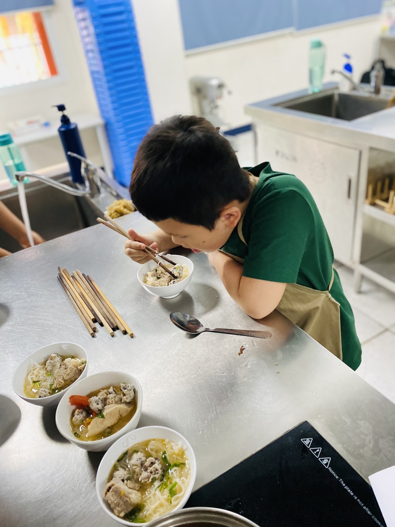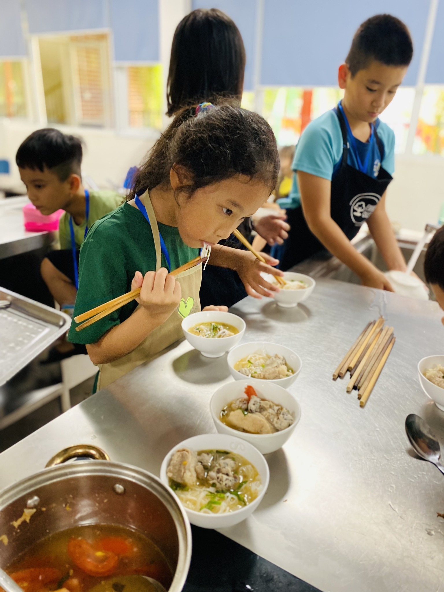 Khi các Eddie bước vào căn phòng kỹ năng gia đình, biết là sẽ cùng nhau chế biến món bún sườn mọc, ai cũng reo lên phấn khích. Thích quá là thích luôn ấy!