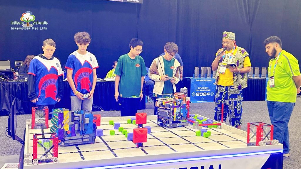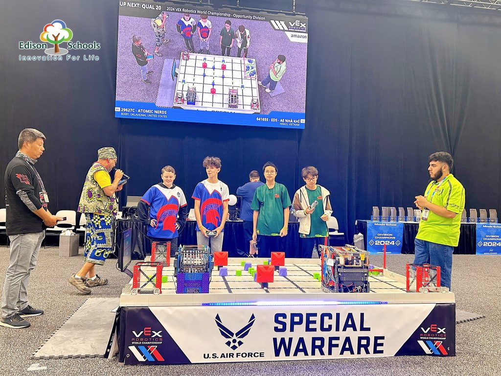 EDS-AE Nhà khỉ đã cùng các đội tuyển trên toàn thế giới tranh tài tại “Vòng chung kết thế giới VEX Robotics”. Gian hàng đậm chất rừng xanh của Edison đã thu hút sự tham gia tìm hiểu của các “bot thủ”.