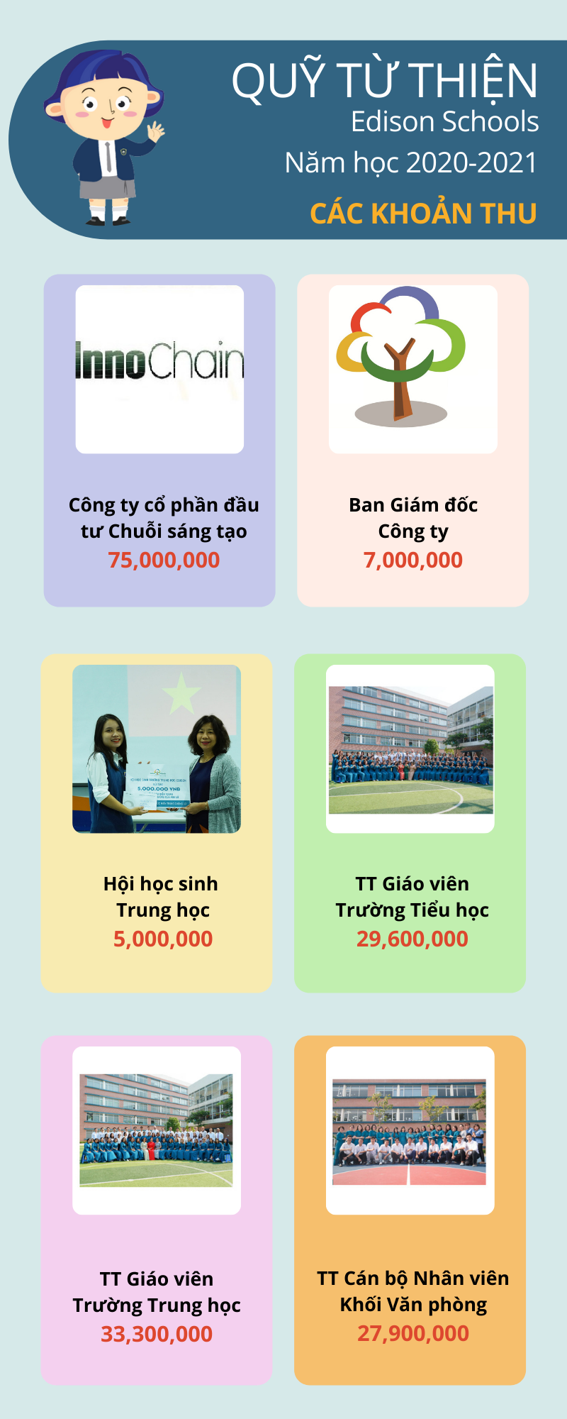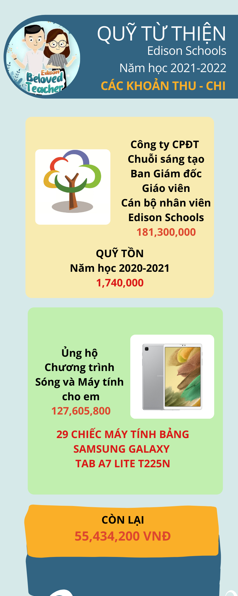 Ban Điều hành Trường PTLC Edison xin bày tỏ sự cảm ơn sâu sắc tới các Học sinh và Phụ huynh vì sự tin cậy, gửi trao những giá trị tinh thần và vật chất tới Quỹ từ thiện Edison.