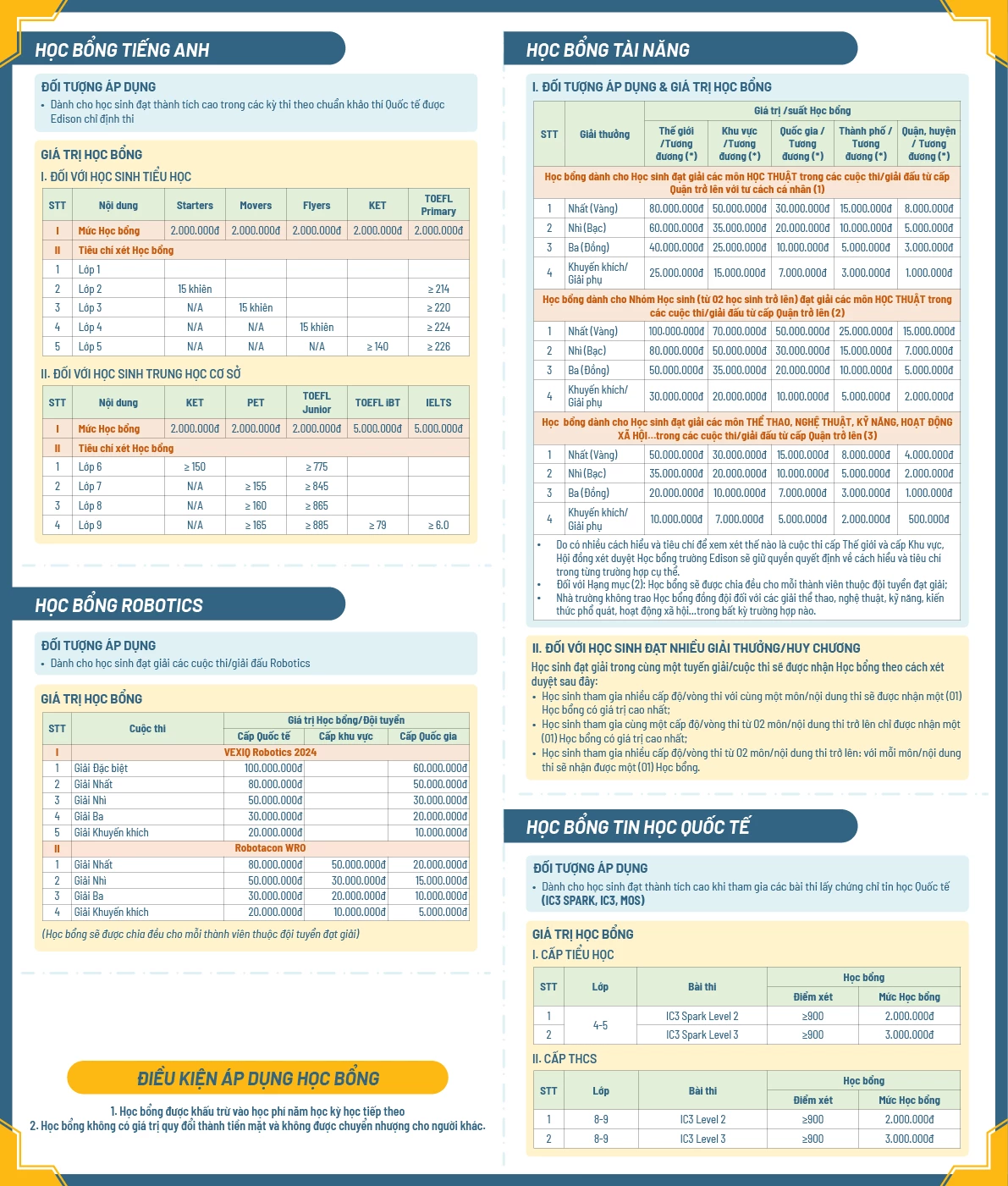 Năm học 2024-2025, Trường Phổ thông Liên cấp Edison tại Mailand Hanoi City, Bắc An Khánh, Hoài Đức tuyển sinh từ lớp 1 đến lớp 9 với thông tin chi tiết như sau:
